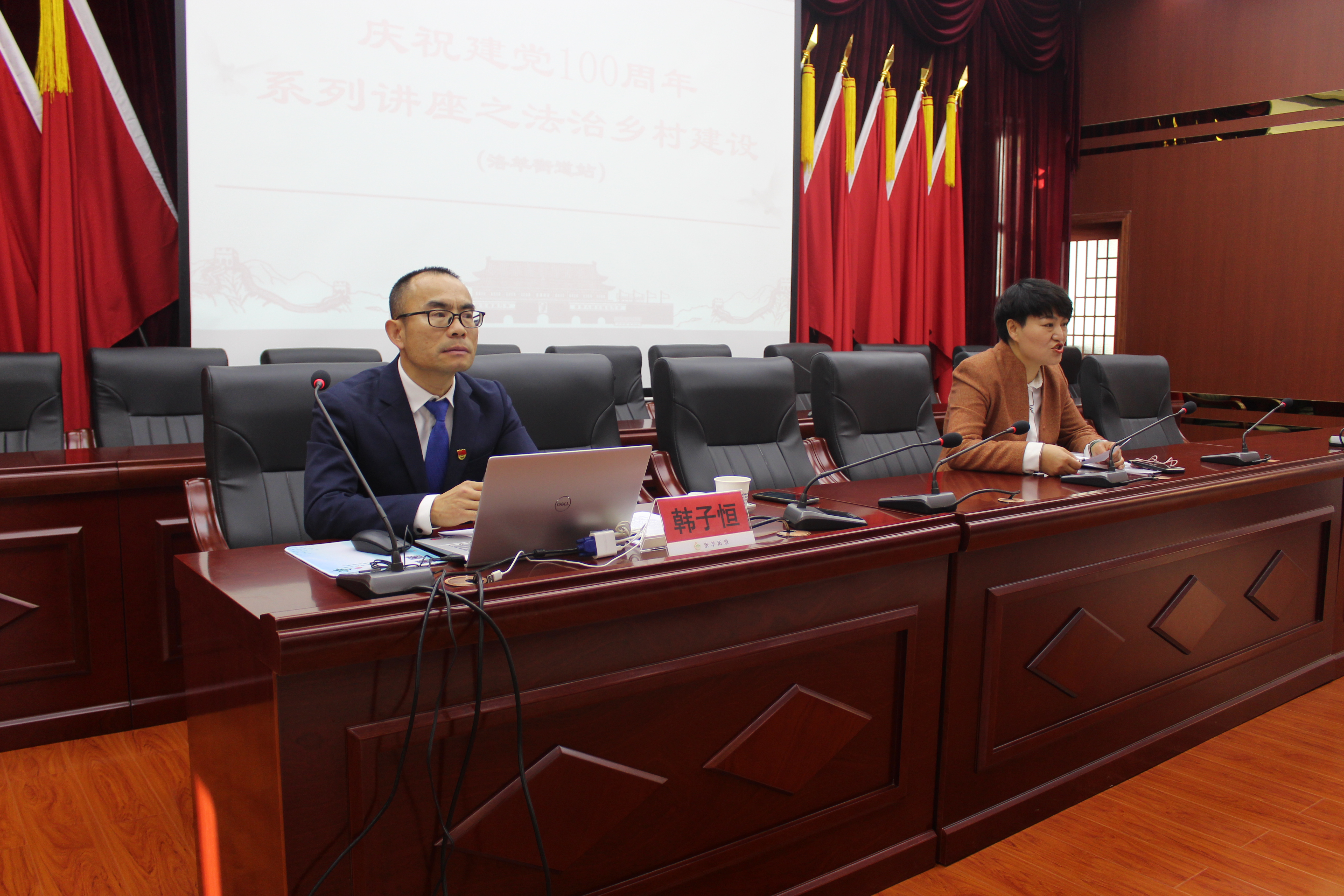 本次讲座主要围绕中央全面依法治国委员会《关于加强法治乡村建设的意见》讲解及《民法典》涉及妇女权益保护条款解读展开。昆明市律师协会副会长、云南千和律师事务所主任韩子恒带领团队成员结合洛羊街道法治建设情况,给全体参会街道办干部开展了一堂精彩生动的讲座,参会人员热情洋溢,学习氛围高涨。