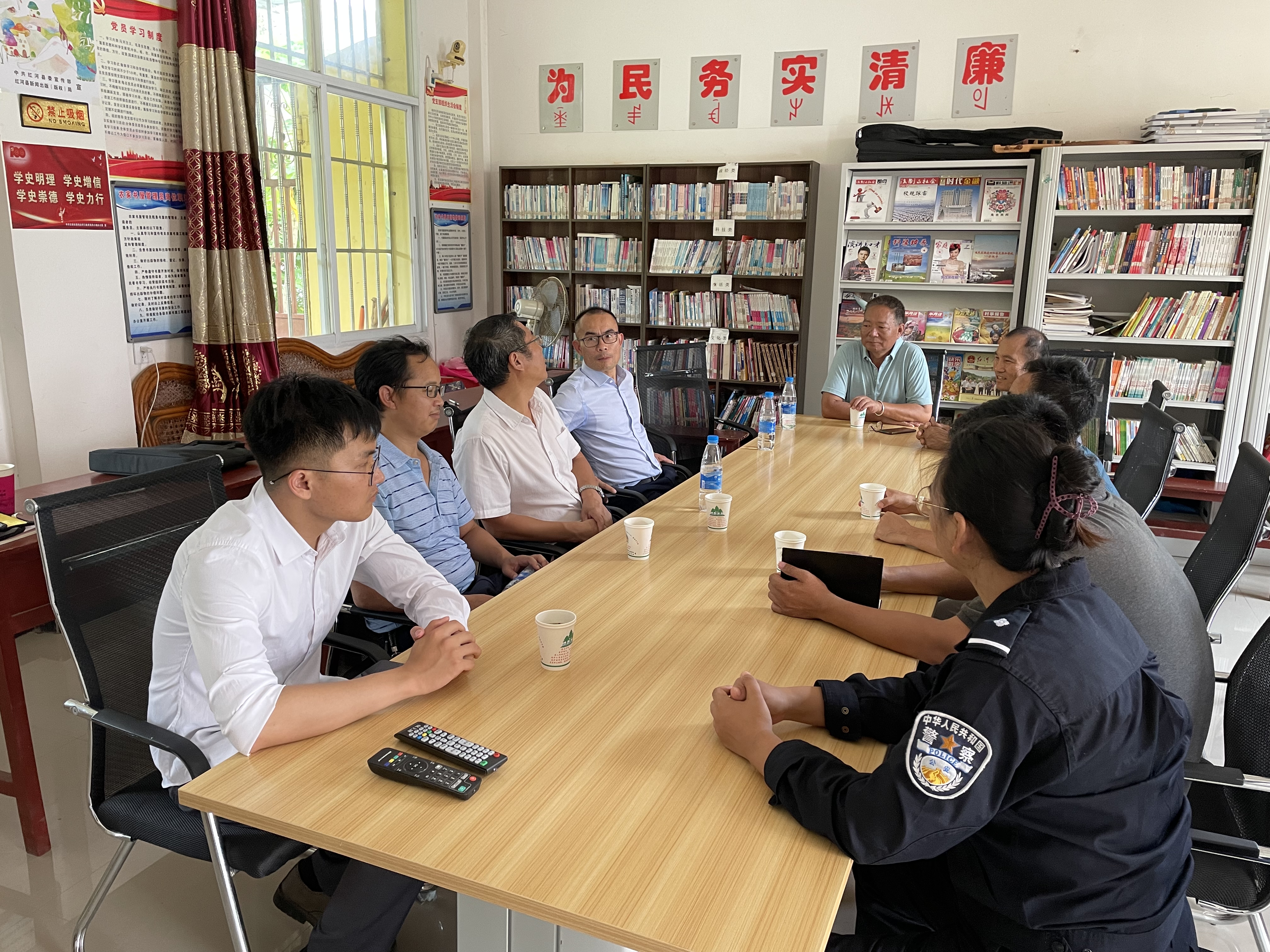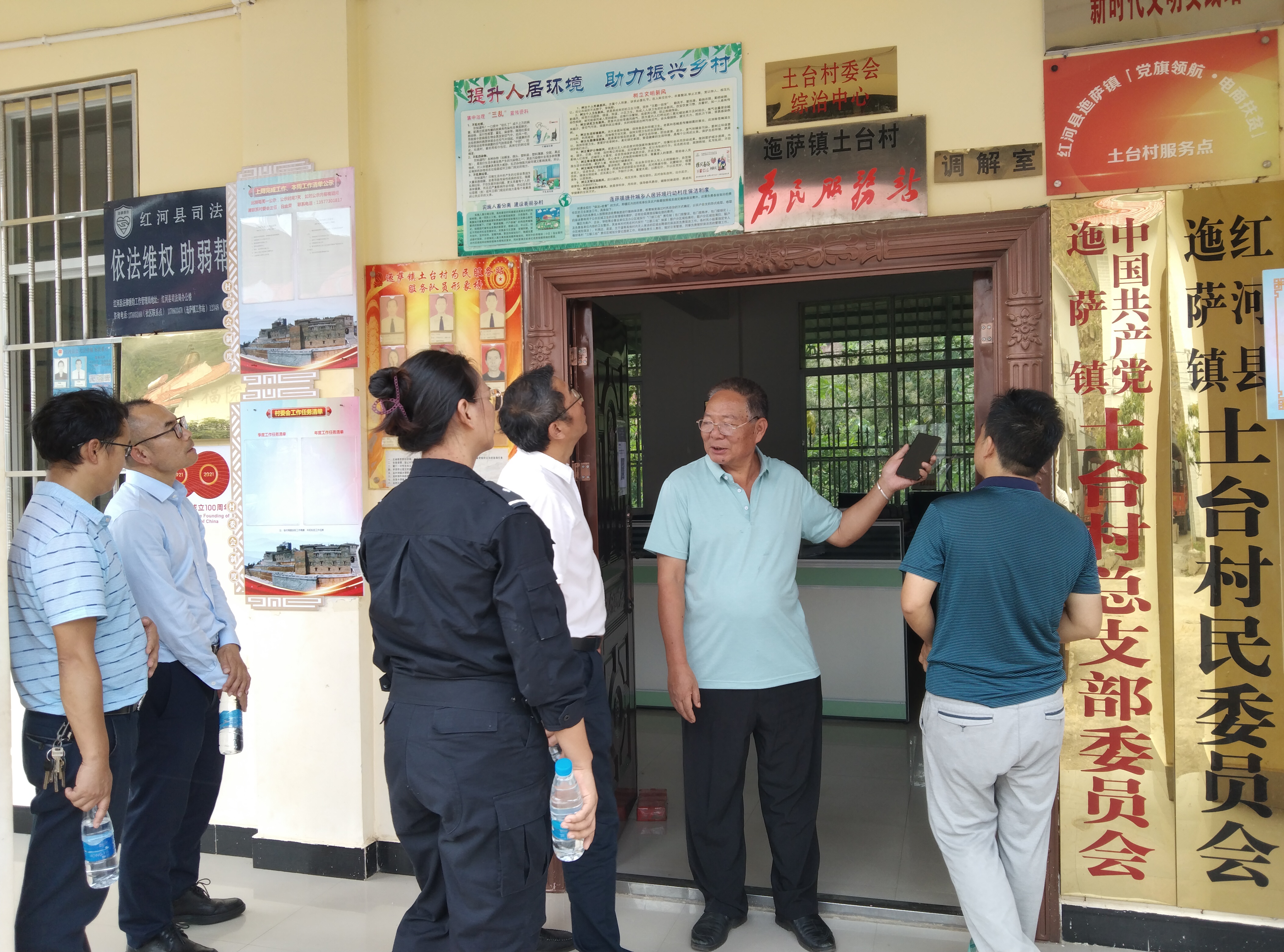 为构建覆盖城乡的公共法律服务体系,夯实基层基础建设,提升公共法律服务水平,为城乡居民提供涵盖面广、便捷高效的公共法律服务,推进“我为群众办实事”实践活动走深走实,2021年7月19日,由红河州司法局党委委员、副局长韩家和带队,红河州司法局公共法律服务管理科科长管绍康、云南千和律师事务所主任韩子恒、实习律师陆凝宇、张贾明慧等一行,到红河县调研基层公共法律服务体系建设工作。红河县司法局局长杨约者、副局长李祖贺陪同调研组调研。