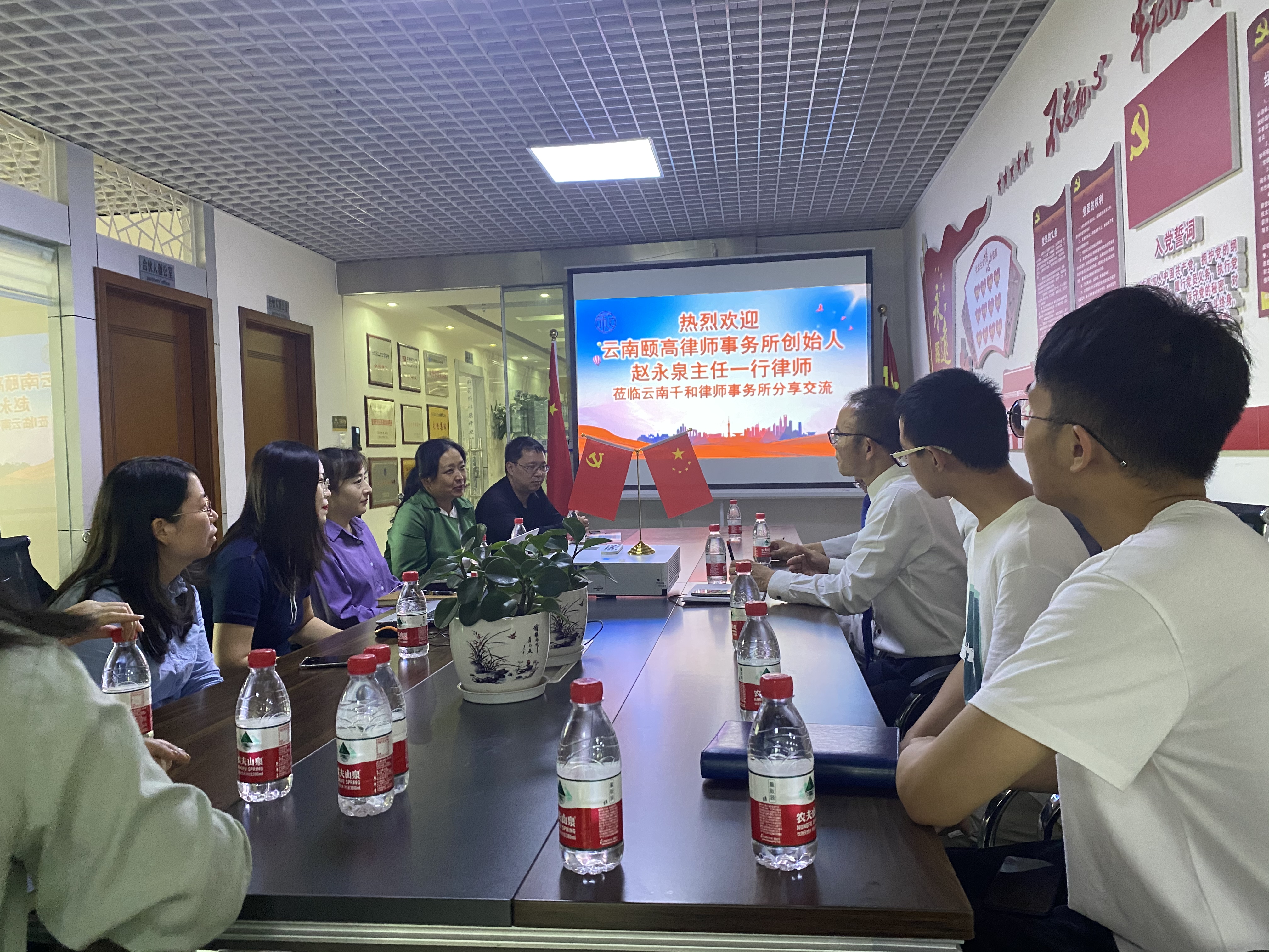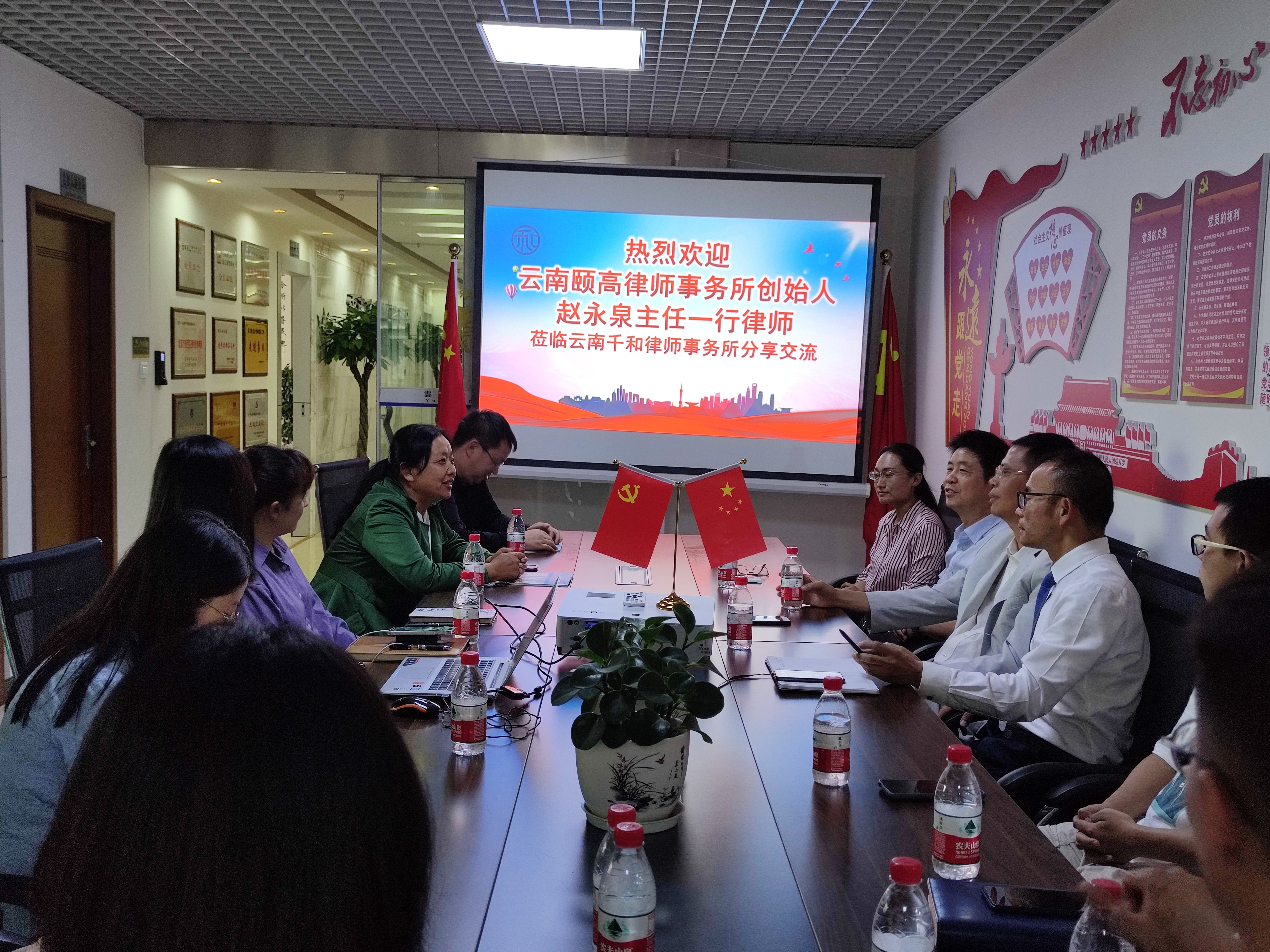 2021年8月9日,云南颐高律师事务所创始人赵永泉主任、胡纯蛟主任、李进等律师一行莅临云南千和律师事务所开展交流活动。