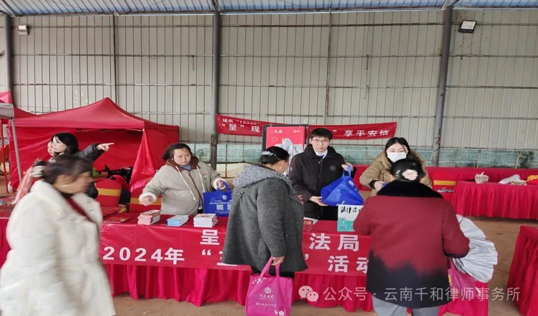 岁末年终,新春将至,在春风和煦、喜气洋洋的节日氛围中,云南千和律师事务所应呈贡区司法局的邀请,于2024年1月26日与其联合在斗南花卉盆景生态园开展2024年“三下乡”法治服务活动。